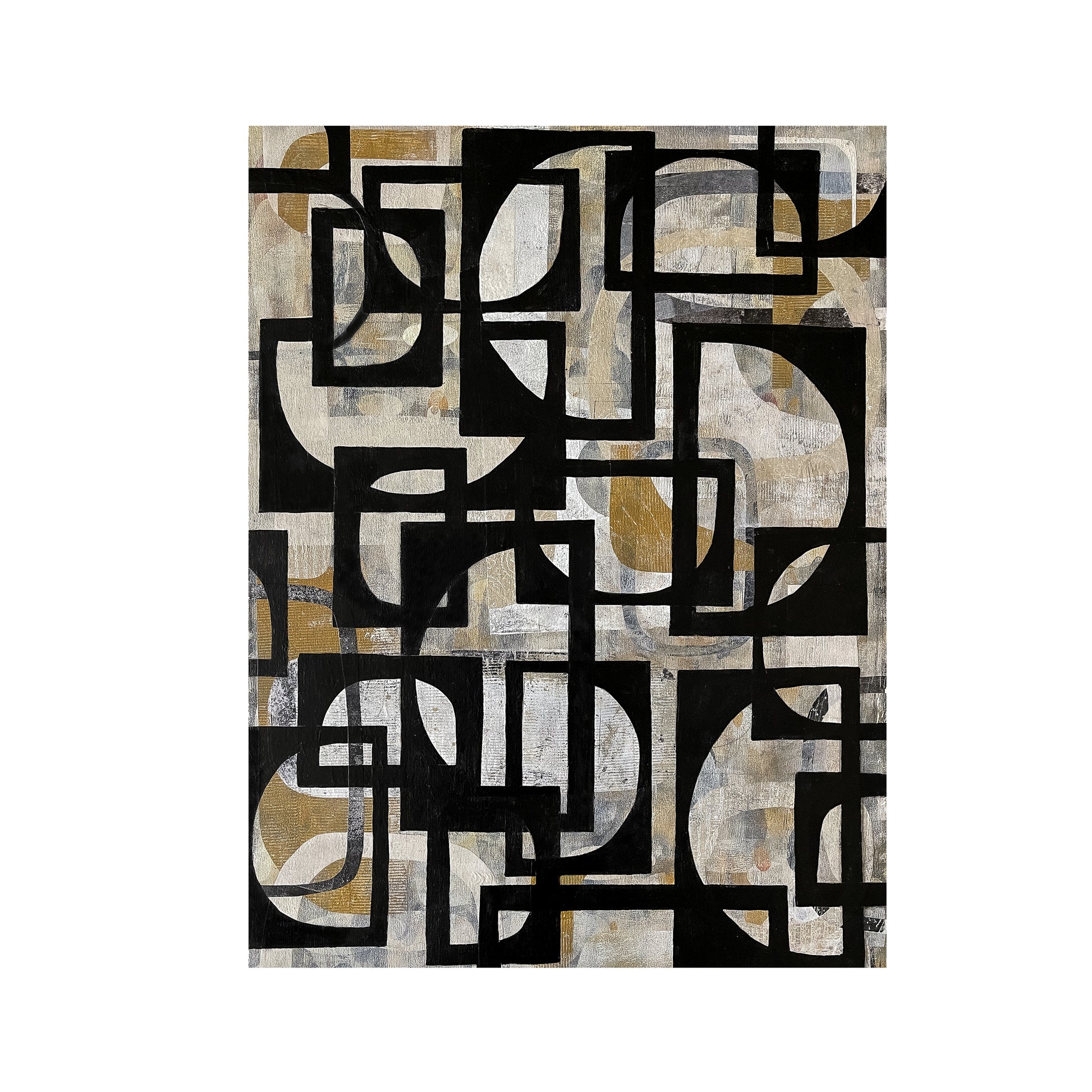 The piece is comprised of collage and hand painted papers and tissue layered on a painted background. Each piece is sealed with varnish and layers of cold wax that have been buffed to a gorgeous matte finish and signed on the back.