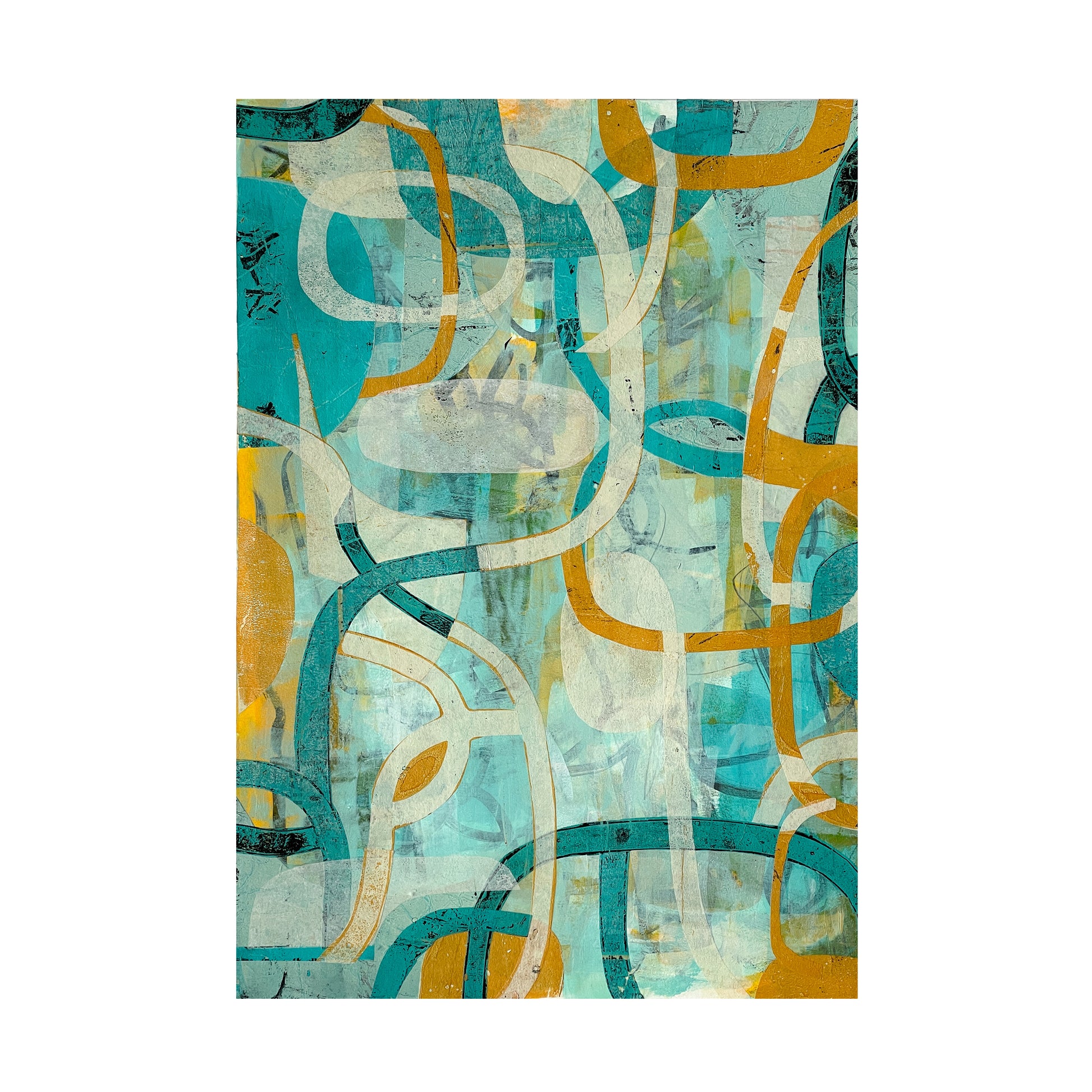 This 9x12 piece is comprised of hand painted tissue, paper, and paint and is matted in a heavy weight 11x14 matte ready to frame.