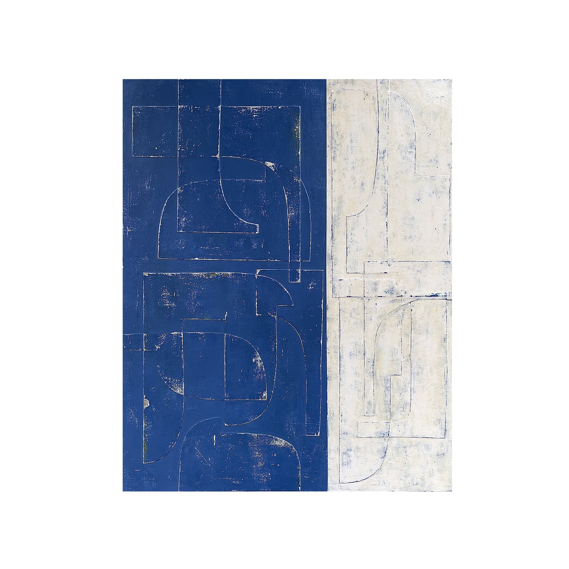 The piece is comprised of collage and hand painted papers and tissue layered on a painted background. Each piece is sealed with varnish and layers of cold wax that have been buffed to a gorgeous matte finish and signed on the back.