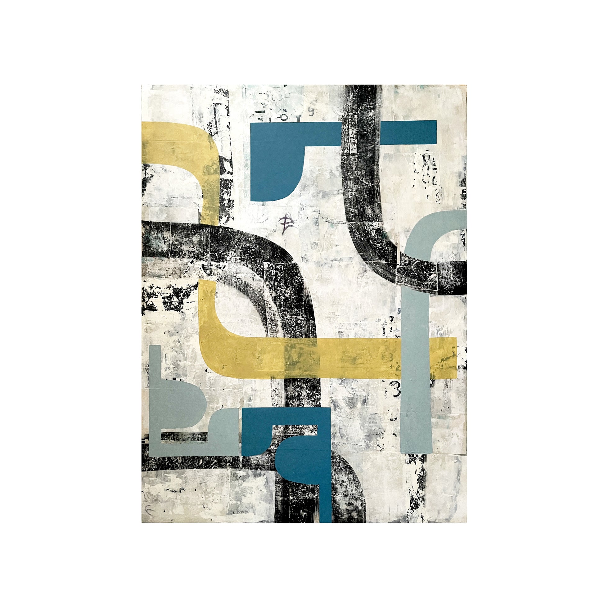 One of a kind mixed media painting on a 30x40 gallery depth wood panel in a black floater frame and ready to hang.