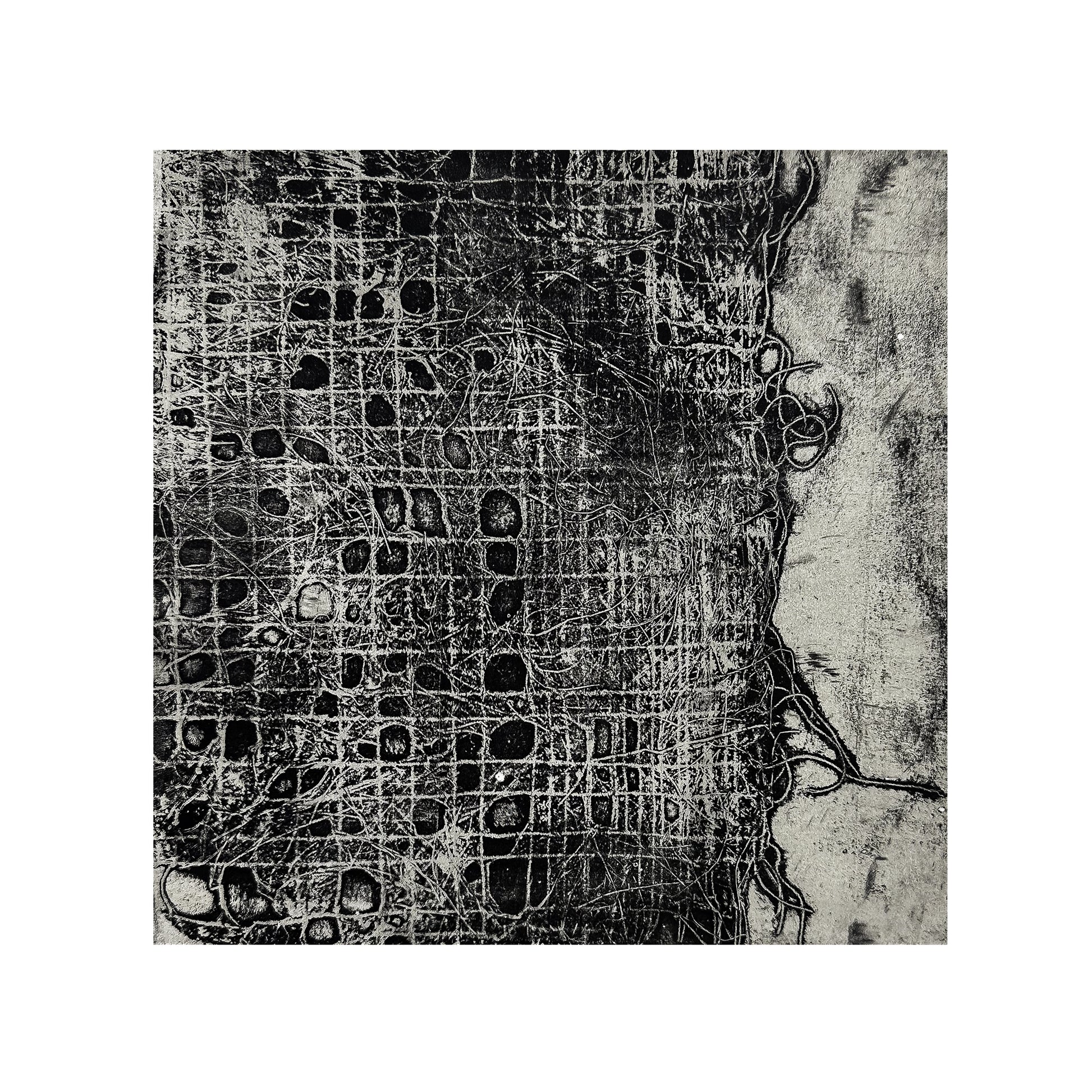 8x8 One of a kind monotype made with acrylic paint, ink, etc. and mounted on a gallery depth wood panel ready to hang. Designed to be displayed unframed, they can stand alone or be grouped for a striking, evolving composition.