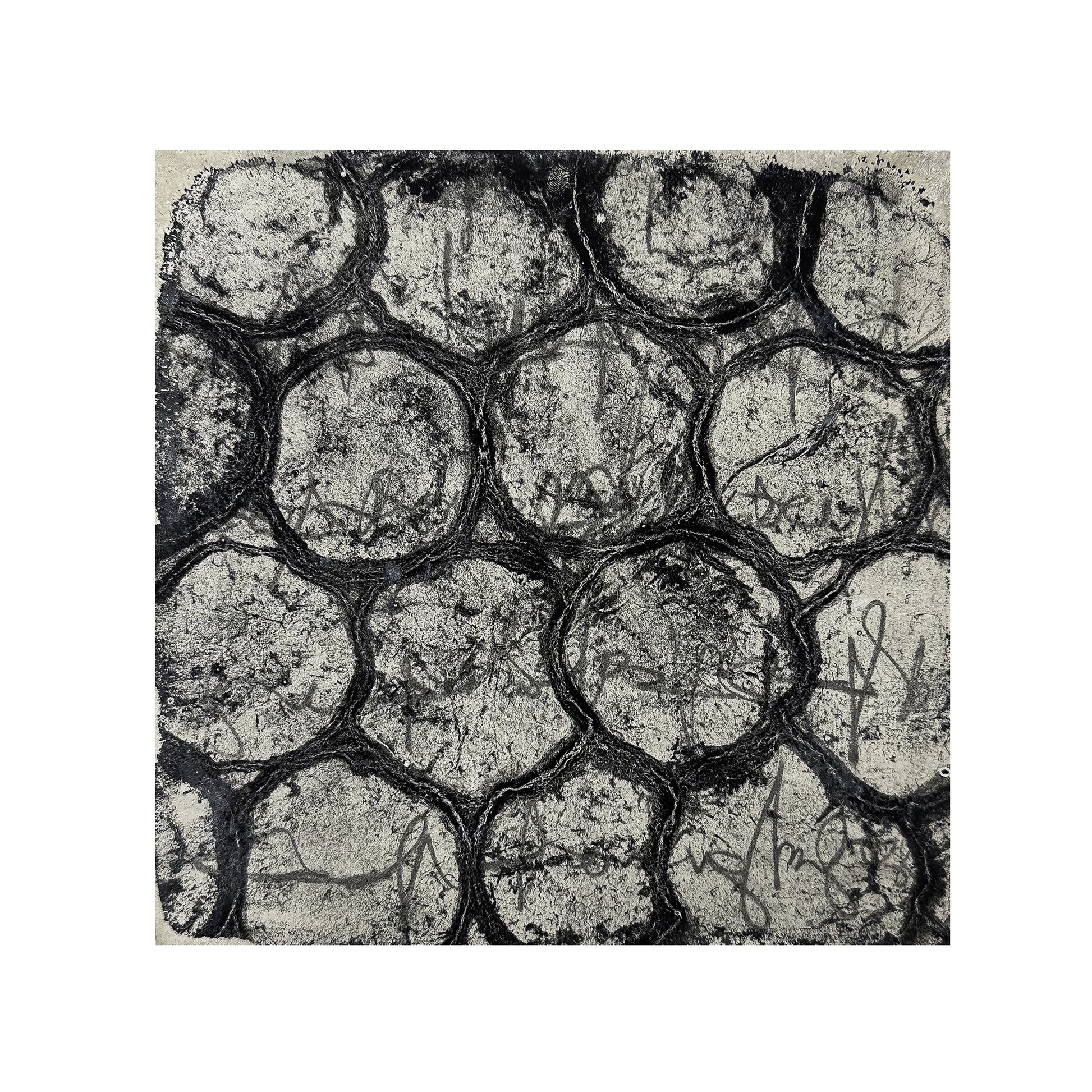 8x8 One of a kind monotype made with acrylic paint, ink, etc. and mounted on a gallery depth wood panel ready to hang. Designed to be displayed unframed, they can stand alone or be grouped for a striking, evolving composition.
