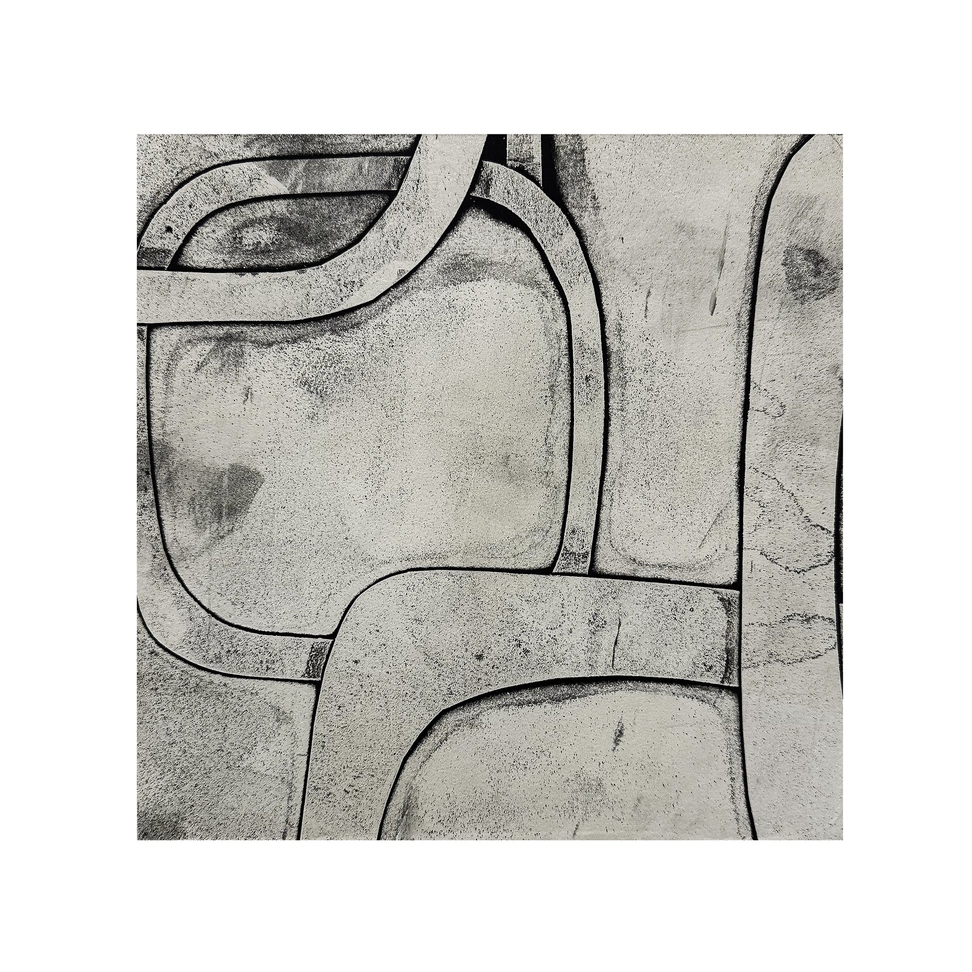 8x8 One of a kind monotype made with acrylic paint, ink, etc. and mounted on a gallery depth wood panel ready to hang. Designed to be displayed unframed, they can stand alone or be grouped for a striking, evolving composition.