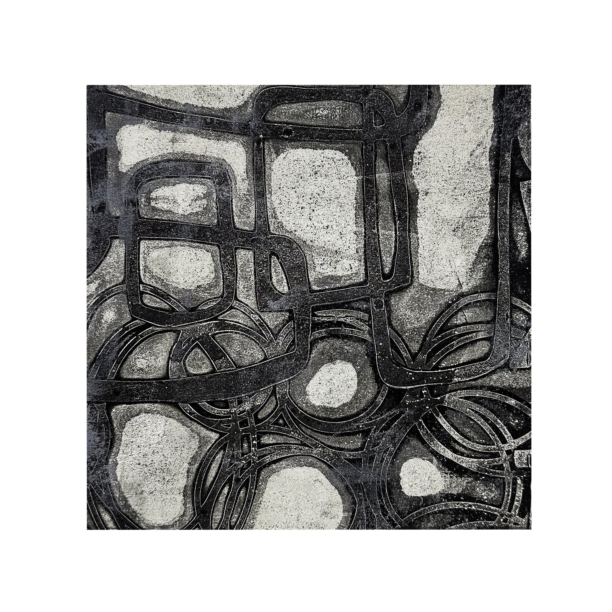 8x8 One of a kind monotype made with acrylic paint, ink, etc. and mounted on a gallery depth wood panel ready to hang. Designed to be displayed unframed, they can stand alone or be grouped for a striking, evolving composition.