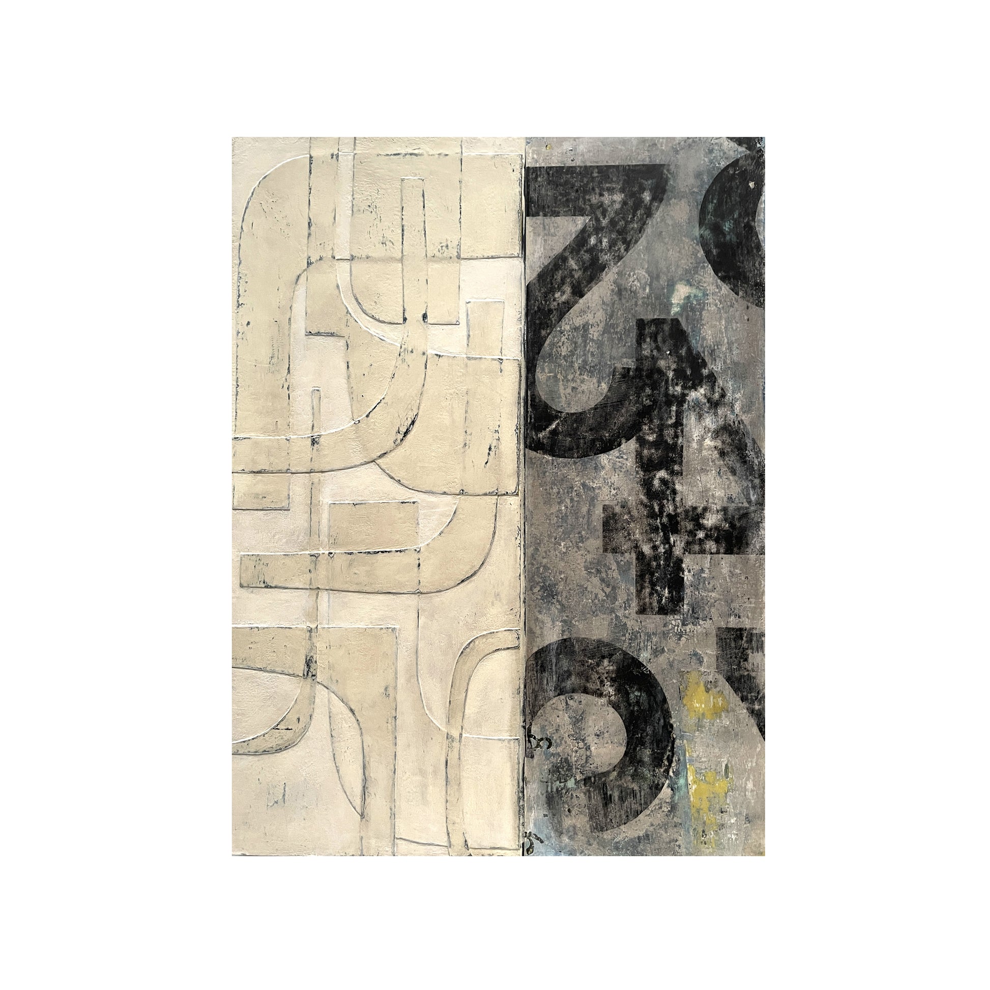 The piece is comprised of collage and hand painted papers and tissue layered on a painted background. Each piece is sealed with varnish and layers of cold wax that have been buffed to a gorgeous matte finish and signed on the back.
